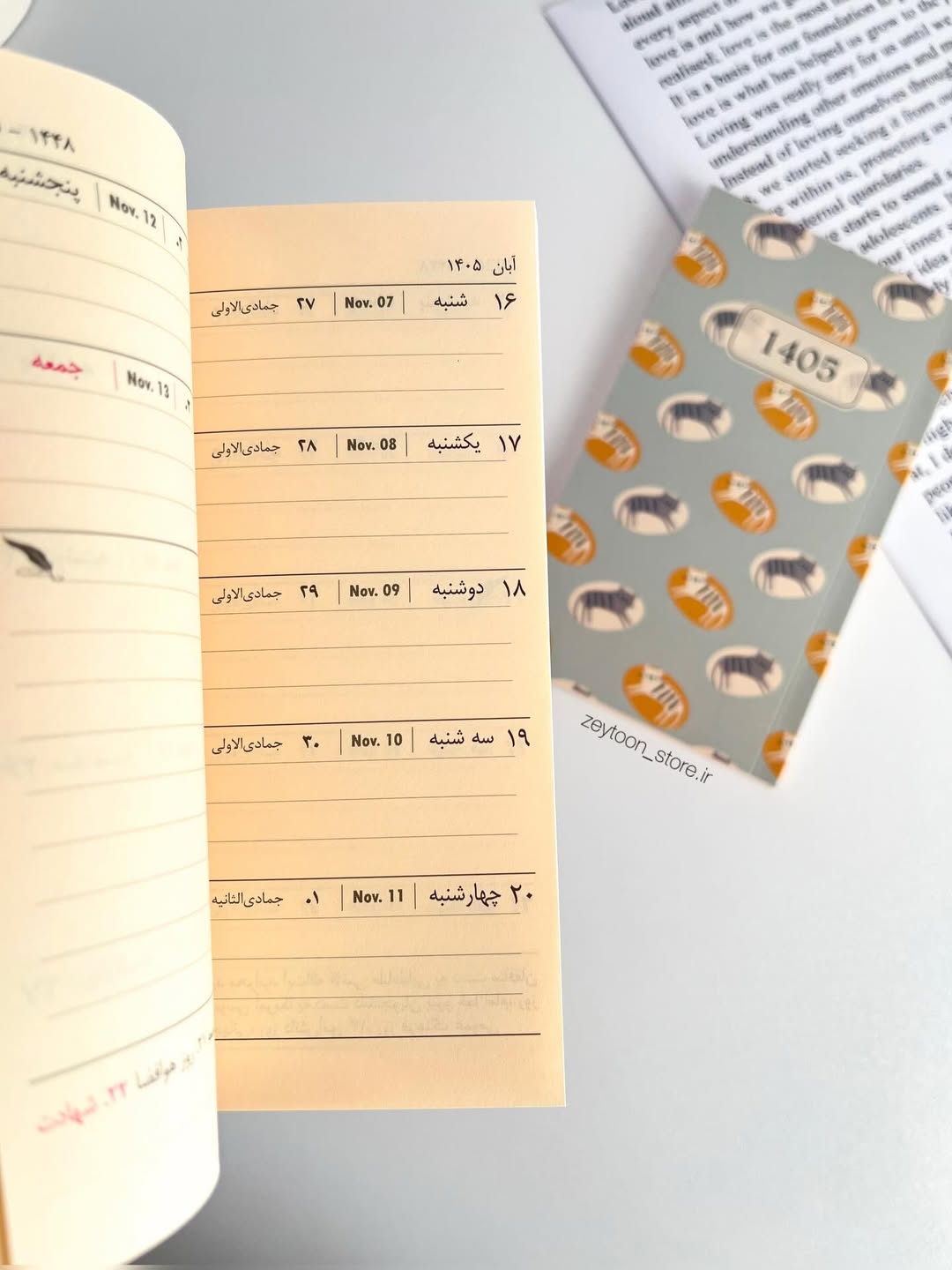 یک تقویم زیبا و نازنازی طراحی شده به همراه مناسبتها. این تقویم ۱ هفته در دو صفحه طراحی شده است و دارای رنگ کاغذ کرم میباشد.